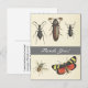 A frente deste obrigado de estilo de vintage que você coloca no cartão postal apresenta a mensagem apreciativa "Obrigado!" em um script como texto, junto com uma representação de cinco insetos. O verso apresenta uma mensagem personalizada de gratidão. Um postal como este poderia ser usado para expressar gratidão por algo especial que alguém fez.