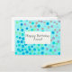 Cartão azul feliz de aniversário feliz com pontos pastel multicolorido. O texto é personalizável. Projetado com um sorriso por Iolantesdesigns:-)!