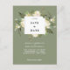 O casamento floral verde da floresta salve o cartão de data. Um belo design com fundo verde de floresta e flores de marfim e sotaques verdes. Fácil de alterar os detalhes do texto para atender às suas necessidades. Muitas papelaria correspondentes nesta coleção bonito. Visite meu compro para ver a faixa de cheios e comprar rsvps, convites, adesivos e muito mais!