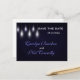 O fundo azul com luzes iluminantes nas ruas adora esta linda e moderna salva as fichas de data e posto com opções personalizadas. Convites de casamento disponíveis e cartões RSVP deste tema elegante de luz de rua em nossa loja.