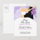 Anuncie seu casamento futuro com nossos cartões de anúncio de Salve a Data com um conjunto de noiva e noivo em um fundo de padrão roxo brilhante. Basta adicionar as informações do seu casamento e você estará pronto para ir! Selos postais e selos de envelope correspondentes disponíveis em nossa loja