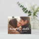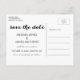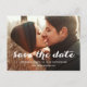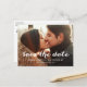 Salvar nossa Data | Script Moderno Salve o Cartão-Postal de Data. Design por Elke Clarke© para a Galeria de Monogramas. Disponível em www.zazzle.com/monogragallery. Sobreposição de texto branco, simples e moderno. Totalmente personalizável se você selecionar "personalizar". Substitua a foto de exemplo mostrada com sua própria foto de noivado. Outras cores disponíveis.
