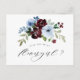 Um lindo design floral com elegantes flores dusty blue e burgundy. O texto e as cores podem ser personalizados.