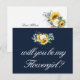Este cartão tem uma cor d'água pintada de girassóis e uma elegante cor azul-marinho. O texto e as cores podem ser personalizados.