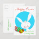 Cartão-postal de Páscoa giro com coelho/ coelho branco cercado por um círculo azul com ovos coloridos de Páscoa pretos no canto. Um fabuloso feriado de Primavera desenhado para celebrar os feriados religiosos. Excelente para que os grupos da igreja e as escolas entreguem aos filhos. Personalize adicionando o nome do jardim de infância / pré-escola / Enfermeiro ou grupo de igreja e depois personalizado com uma mensagem no verso.