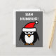 Cartão dos desenhos animados do pinguim do Natal da farsa de Bah anti. Design engraçado para os feriados de inverno com desejos ou cumprimentos personalizable das estações. Pinguim que veste um chapéu de Papai Noel.