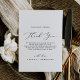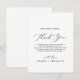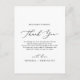 Este delicado obrigado de caligrafia que você recebe é perfeito para um casamento moderno. A design romântica minimalista apresenta uma magnífica e elegante tipografia negra num fundo branco com um aspecto simples e limpo. Coloque essas placas na configuração de mesa para cada um dos seus convidados na sua recepção de casamento. Personalize o cartão com os seus nomes e uma mensagem de obrigado especial.