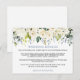 Watercolor Ivory White Floral Greenery Dusty Blue Wedding Details Insert Card inclui rosas brancas de marfim e verde botânico.