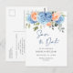 Para personalização adicional, clique em "Personalizar este modelo", em seguida, "Editar usando a Ferramenta de Design". Modelos de casamento elegantes e fáceis de usar, mais itens disponíveis na loja (convites, confirmação de presença, cartões de agradecimento, papelaria e decoração). Se precisar de ajuda ou itens correspondentes, entre em contato comigo. Cartão postal de salvar data de casamento com Hortênsia Azul.