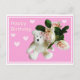 Postal Feliz cartão de aniversário Urso de pelúcia e rosa