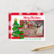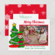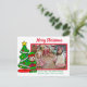 Adicione a foto da sua família a este Cartão com fotos Feliz de Natal. Elfo de desenho vermelho verde e árvore de Natal e o quadro da sua família.