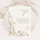 Este cartão de agradecimento de recepção Whimsical Wildflower | Ivory é perfeito para o seu casamento simples e elegante boho. A moderna folhagem rústica acompanhada pelas flores silvestres minimalistas em aquarela ajudarão a dar vida à sua visão! Este design de lindas flores douradas, toques de verde-sage boêmio e roxo certamente completará o seu sonho de casamento floral minimalista de outono! Deixe como está ou escolha personalizá-lo com suas fotos! Você também pode olhar para outros itens desta coleção para realmente unir todo o seu casamento!