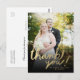 Postal Foto Dourada Faux Script de Mão Obrigado Cartão Po