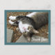 Este cartão postal adorável diz "Obrigado". Ele mostra uma fotografia de um gato malhado encantador com olhos verdes sonhadores, narizinho rosa com sardas, peito branco e patas brancas. O Big Boy olha para cima e posa para a foto antes de tirar uma soneca na sujeira e nos pinhões que foram aquecidos pelo sol. Um cartão postal perfeito para todos os amantes de gatos.
