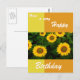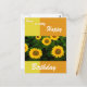 Um jardim de girassol fresco e ensolarado com o slogan "Tenha um aniversário muito feliz".