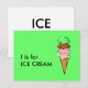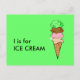 Postal "I" é para o Cartão Flashcard alfabético do Sorvet