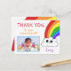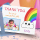 Cartões de agradecimentos de aniversário para crianças com foto, nome e obrigado nota. Você pode personalizar facilmente o cartão com sua foto e seu nome favoritos. Você também pode mudar o texto. Este cartões de agradecimentos bonito tem uma nuvem kawaii com o arco-íris em diferentes cores em um fundo branco. As crianças vão adorar este cartão fofo.