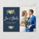 aquarela eucalipto e girassóis com script de pincel branco e uma imagem dos recém-casados, sintam-se livres para personalizar as características deste cartão.