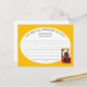 Moderna MINHA MEMÓRIA ESPECIAL DE VOCÊ fotografa Compartilhar um cartão de memória, incluindo um verso PERSONALIZÁVEL de Foto e Escrituras Cristãs. Usado em vez de um Livro de Condolências, os convidados podem anotar sua memória especial da pessoa que passou. O design mostra o painel oval com MINHA MEMÓRIA ESPECIAL DE VOCÊ em texto curvo, que é PERSONALIZÁVEL, para que você possa adicionar seu próprio título. Você também pode adicionar uma foto e o nome do amado na frente. As linhas pontilhadas estão lá para ajudar as pessoas quando escrevendo, e continuam no verso. O esquema de cores é AMARELO. Estes cartões podem ser entregues em funerais aos participantes, ou incluídos em convites e devolvidos por aqueles que não podem estar presentes mas que ainda gostariam de partilhar uma memória. Convites correspondentes disponíveis. Também vem em outras cores.
