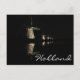 Cartão postal dos famosos moinhos de vento de Kinderdijk em uma fila ao longo do canal com reflexo na água, iluminados na noite escura, criando uma cena surreal na Holanda com o texto: 'Holland'.