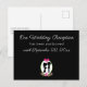 Três linhas de texto personalizável na frente e um parágrafo no verso destacam este cartão postal de adiamento de recepção de casamento de casal fofo.