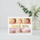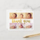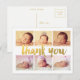 6 cartões postais feitos por personalização com obrigado dourado, tipografia. Obrigado de folha de ouro moderno e contemporâneo, você pode tipografar 6 fotos, quadro branco, modelo de cartão postal que você pode carregar com os retratos de fotos de seu próprio filho ou filha. Personalize fácil e rapidamente este designer, impresso profissionalmente, o novo cartão postal de anúncio de nascimento de bebês aqui e agora digitando apenas o texto de exemplo e adicionando suas próprias fotografias. Fotografia de exemplo usada com permissão. Deve ser substituído por sua própria fotografia antes de comprar.