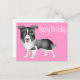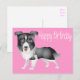 Quem consegue resistir ao rosto fofo de um cachorro da Border Collie? Este cartão-postal de saudação feliz de aniversário apresenta um desenho gráfico de um cão-cola preto-e-branco, destacado contra um fundo rosa vibrante. Os cartões postais de aniversário são um alternativo econômico para cumprimentar cartões quando você quer enviar uma rápida nota de aniversário. Alguns outros cartões de aniversário caninos que você pode gostar... com