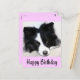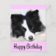 Quem consegue resistir ao rosto fofo de um cachorro da Border Collie? Este cartão-postal de saudação feliz de aniversário apresenta um retrato de um cão collie preto-e-branco com sono, com uma borda rosa pálida, destacando uma saudação de aniversário feliz. br> Cartões-postais de aniversário são um alternativo econômico para receber cartões quando você quer enviar uma nota de aniversário rápida. Alguns outros cartões de aniversário caninos que você pode gostar... com