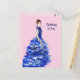 Baseado na ilustração de moda de aquarela por mim mesma Farida Greenfield. Linda garota com cabelo escuro vestindo uma espantosa esparsa e eletrizante corcunda azul-esparsa. O design tem textos que podem ser personalizados com o texto de sua preferência.