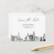 A moderna Filadélfia preto e branco salva o convite do cartão-postal no jornal oficial. A frente mostra um desenho impressionante, dando o tom perfeito para o dia do seu casamento. Adicione personalizar o texto para torná-lo seu. Entre na ferramenta Zazzle design para personalizações adicionais do design. Vem automaticamente em papel mate. Ajuste para semirbrilho, se preferir.