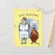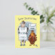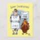Um cartão com um desenho engraçado sobre uma vaca e um peru pedindo para comer mais galinha. A imagem e o texto podem ser personalizados.