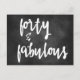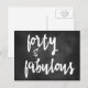 NewParkLane - Cartão-postal moderno em preto e branco, com citação divertida 'Quarenta & Fabuloso' em uma tipografia de roteiro da moda, contra um fundo de quadro-negro.