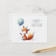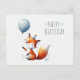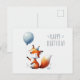 Postal Raposa Adorável com Cartão de Aniversário de Balão