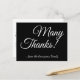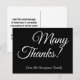 Este respeitável e elegante design de cartão-postal, com o obrigado, mostra a mensagem "Muitos Obrigados!" na frente, juntamente com uma mensagem personalizável no verso. Pode ser usado para mostrar apreço a alguém que tenha comparecido a um casamento, a um funeral, a uma formatura ou a qualquer outro evento.
