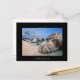 Cartão postal das grandes rochas na praia de areia de Cala Mariolu, situada perto de Cala Luna, no Golfo de Orosei, na ilha da Sardenha, Itália com uma fronteira negra e o texto: "Sardenha".