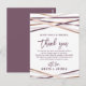 Este rosa dourado obrigado de cartão de recepção é perfeito para um casamento moderno. O design chic apresenta linhas nítidas de travamento em roxo de ameixa, cor-de-rosa-pincel e folha de ouro rosa para um aspecto geométrico. Coloque essas placas na configuração de mesa para cada um dos seus convidados na sua recepção de casamento. Personalize o cartão com os seus nomes e uma mensagem de obrigado especial. Nota: Este design não apresenta folha de ouro rosa real. É um gráfico de alta qualidade feito para se parecer com um martelo de ouro rosa.