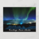 Mande a seus amigos e família uma saudação verdadeira do Alasca com as luzes do Norte dançando sobre as montanhas do rio Eagle, no Alasca. Veja nossa correspondência também!