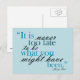 Cartão inspirador que caracteriza citações por George Eliot "é nunca a tarde ser o que você pôde ter sido."