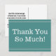 Este simples e profissional design de cartão-postal mostra a mensagem "Muito obrigado!" na frente, juntamente com uma mensagem personalizável no verso. Pode ser usado para mostrar gratidão a alguém que fez um ato especial.