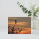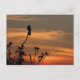 Postal um pássaro na árvore no cartão de posto do pôr do
