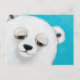 Postal Urso polar bonito no cartão azul