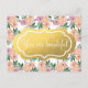 Este cartão-postal floral certamente elevará seu espírito sempre que você estiver se sentindo mal ou teve um dia ruim.Você também pode enviar isso a um amigo que está tendo um dia áspero.O design destaca o padrão de flor de cor de água rosa e pêssego. O design principal consiste em 3 flores em cor-de-rosa e pêssego, com 2 samambaias verdes. Quer mudar ou alterar algo na design? Apenas me mande uma mensagem e eu ficarei feliz em fazer isso por você!