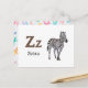 Postal Z é para Zebra - Cartão Flash Alfabético