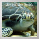 Uma poster engraçada com uma tartaruga gigante e texto que diz "Viva Longo, Viva Saudável".