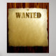 Um grande poster, envelhecido e engraçado, em um antigo estilo selvagem, no estilo oeste, com um velho cartaz de papel pendurado em um fundo de madeira. A palavra "WANTED" está no antigo estilo ocidental, texto em negrito. Pronto para personalizar com seu próprio texto, foto ou imagem. Diversão e risos por crianças, adolescentes e homens e mulheres de todas as idades. Altere facilmente o tamanho deste poster.