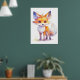 Um poster muito bonito com uma ilustração de uma raposa bebê sorridente.
