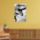A giant t-rex dinosaur, in black and white, on a wall poster for you to color or display, as is.