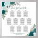 Este assento de casamento impressionante inclui 10 mesas adornadas com um design floral rústico com rosas de aquarelas pintadas delicadamente à mão em tons de lacre, turquesa, aqua e ciano, com sotaques de folhas de eucalipto e verde de jardim. A disposição alberga até 100 convidados, com 10 lugares disponíveis por mesa. O título elegante da caligrafia diz "por favor encontre sua mesa" e os nomes do casal e do casamento aparecem no fundo. Este gráfico de assentos é esteticamente agradável e funcional, fazer fácil para os hóspedes localizar seus assentos designados enquanto adiciona à beleza geral de sua recepção de casamento.