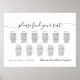 Gráfico de Assentos de Casamento Minimalista Por favor, encontre seu gráfico de assentos para 110 convidados. Um design elegante em preto e branco ou qualquer cor de fundo que você escolher. Basta clicar no link personalizar ainda mais, mostrado sob a área de personalização de texto à direita, e escolher a cor de fundo personalizada. Este modelo de cartaz de sinal faz com que seja rápido e fácil criar adições impressionantes para a decoração do seu casamento. Os sinais podem ser diminuídos, há muitos tamanhos para escolher, bem como opções para molduras e passe-partout personalizados.