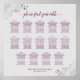 Este lindo gráfico de assentos de casamento inclui atribuições de mesa para 140 convidados em 14 mesas. O design simples, porém elegante, apresenta texto magenta ou roxo no quadro de uma cinza com um título de caligrafia de script antigo. Os cantos são decorados com uma pasta de papel falso prateada com caramujos e espirais. Na moda, chic e sofisticada maneira de ajudar seus convidados a encontrar seus assentos na sua recepção.